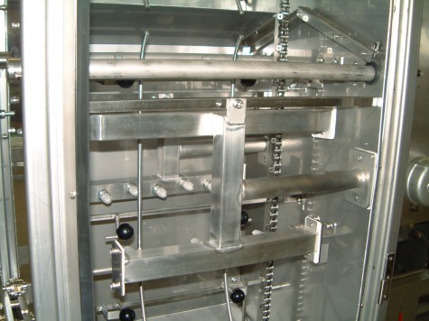 기계내에 28개의 노즐을 裝着하여 더러워진 트레이를 분사 세척합니다. 세척후 깨끗하게 헹군후 에어로 탈수하여 배출합니다.